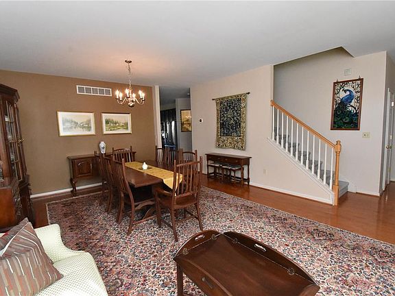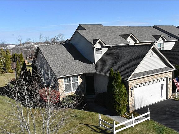 Upper Saucon Township – Highly Sought-After END UNIT – Ashton Model on a Cul-de-Sac. This exceptional 3-bedroom, 2.5-bath, 2-car garage townhome is situated on one of the largest lots in the community. Designed with comfort and elegance in mind, the home features a 1st floor primary bedroom suite and a spacious open layout, perfect for entertaining. Step inside to discover soaring ceilings and gleaming hardwood floors that add warmth and sophistication. The galley-style kitchen is a chef’s delight, complete with granite countertops, cherry cabinetry, stainless steel appliances, & a gas range. Relax in the open-concept family room, where vaulted ceilings, skylights, & a modern paddle-fan light complement the cozy natural gas fireplace. The 1st -floor primary suite has dual vanities, a soaking tub, a separate shower, and an enclosed toilet for added privacy. A convenient laundry/mudroom and half bath complete the first level. Upstairs, you’ll find a sitting area, two generously sized bedrooms with oversized walk-in closets, & a full bath. Outside, enjoy entertaining on the deck & patio, overlooking a beautiful landscape. The huge basement offers abundant storage space. The HOA handles lawn care & snow removal, ensuring the community remains pristine. Conveniently located just 1 mile from the upscale Promenade Shops at Saucon Valley, featuring AMC Theatres, Fresh Market, fine dining, and boutique shopping. Easy access to Routes 309 and I-78 makes commuting a breeze.