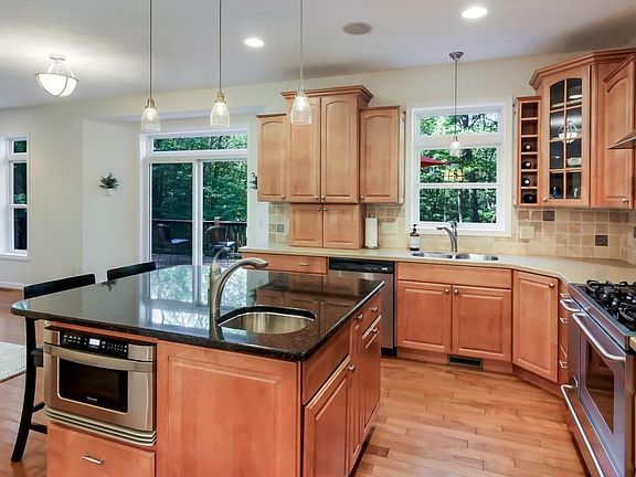 Stunning, 4BR/2.5BA home on a large wooded lot which backs up to conservancy land holidaywoodlandspreserve.com This custom build features 4 bedrooms all on the same floor, master suite w/walk-in closet, plus a bonus room over the garage which could be used as a 5th bedroom, spacious gourmet island kitchen with granite counters & chefs oven, formal dining room, main floor office,living room w/gas fireplace and surround sound speakers, central AC, main floor laundry, hardwood floors & 9' sliders to the huge deck overlooking beautiful rolling hardwoods. The walkout basement is plumbed for a 3rd bath and 2nd fireplace and ready to be finished to ones liking. Exterior features include Cement board siding & an attached 3 car garage.