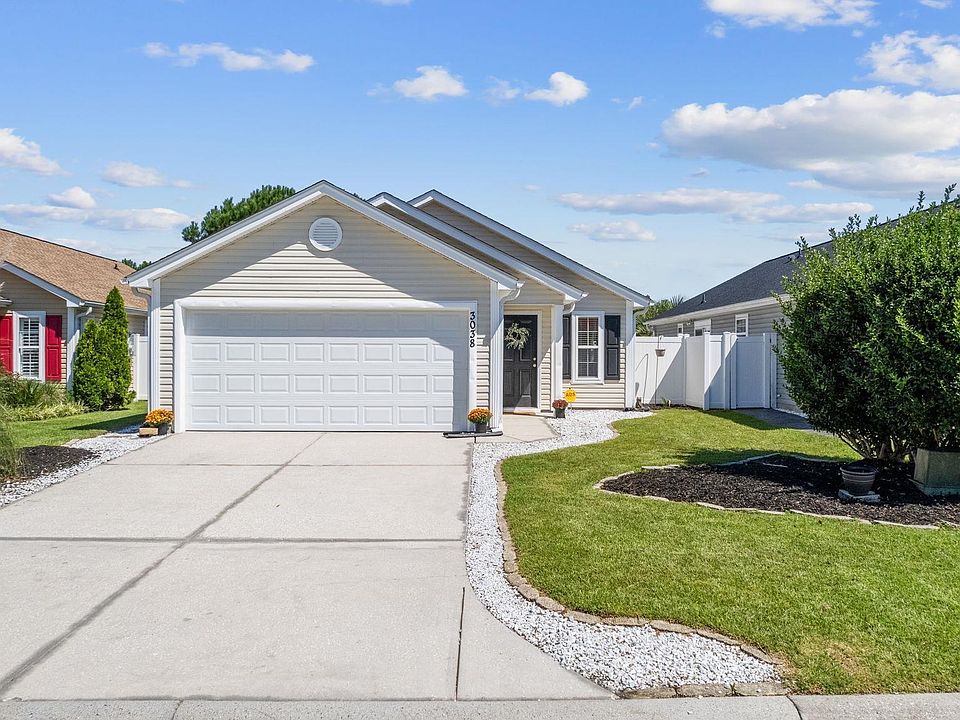 Discover a charming residence which offers a spacious living area, a well-designed kitchen, and a serene backyard. This meticulously maintained and recently remodeled home lies in the heart of a very desirable neighborhood, Avalon at Carolina Forest. This beautiful home offers a perfect blend of style, comfort, and functionality. All the big ticket items are newer: Roof (2022), Water Heater (2022), HVAC Condenser and Air Handler (2020). As you step inside, you will be greeted by a spacious living room with high ceilings, lots of natural light, Eagle Creek’s Harbor Luxury Vinyl Flooring throughout the home, and new LED lights and ceiling fans as well. The living room has a great layout allowing for your furniture to be configured many different ways and it is ideal for lounging, entertaining, or simply unwinding. It is equipped with a new ceiling fan with LED diming light. Adjacent to the living area is the dining room and kitchen where you can host unforgettable dinner parties or enjoy a quiet meal with family and friends. The kitchen features level 3, Astoria Granite, brown granite composite single basin sink, white beveled tile backsplash, oil-rubbed bronze pulls on white cabinets, high lumen LED recessed lighting, a 12 inch bar extension, and last, but not least new (2022) GE Stainless Appliances in a specialized color (slate), including a ceramic cooktop range with an oven enabled for air-frying and convection baking and new InSinkerator Garbage Disposal. You will enjoy plenty of cabinet space, a large pantry, and expansive counters. The primary bedroom is a peaceful retreat, complete with a walk-in closet and an ensuite bathroom which has all new comfort heigh toilet, vanity, lights, fan, mirror, and oil-rubbed bronze plumbing fixtures. The primary bedroom also features a bay window overlooking the patio with views to the pond. The second and third bedrooms are generously sized and have new ceiling fans with LED dimming lights. The second bedroom has a walk-in closet as well. The guest bath has a shower/tub combo with new plumbing fixtures and also new vanity, mirror, lights, fan, and comfort height toilet. Off the dining room you’ll find a glass slider which leads out to the walkway connecting to an amazing backyard. Once outside, you'll find a large, fully fenced backyard which is sunlit in the morning and shaded in the afternoon. This beautiful home is further complimented by a lovely view of the pond and extended patio area, perfect for barbecuing, dining or relaxing while enjoying the beautiful South Carolina weather. Avalon boasts an incredible amenity center complete with picnic area, playground, outdoor pool (with showers and bathrooms), basketball court, volleyball court, baseball field, and soccer field. If you love outdoors and recreation, you will love Avalon! Carolina Forest has always been a desirable area, but now the Boulevard features walk/bike paths and a widened road with traffic lights, making it more desirable than ever. There are also many shopping and dining options within minutes of the home. Plus, you'll be just a short drive away from Myrtle Beach's famous attractions, including its beautiful beaches, world-class golf courses, outlets and malls, dining, and entertainment options. If schools and medical facilities are important to you, you are covered there as well. Outdoor enthusiasts will also enjoy the close proximity of the Horry County Bike and Run Park – aka “The Hulk” by the locals. LISTING AGENT IS MARRIED TO SELLER. All information is deemed reliable, but not guaranteed. All measurements, including square footage, are approximate and not guaranteed. Buyer is responsible for verifying all information. Audio and video surveillance at property. Be sure to ask your REALTOR® for a full list of updates and to book your showing ASAP! We look forward to your Offer. Don’t delay!