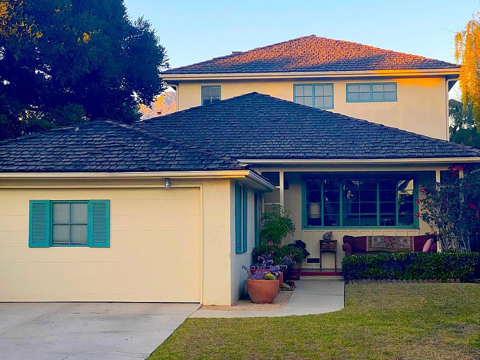 Spacious and gorgeous two-story home in the coveted Samarkand neighborhood, available July 15th! This beautiful 4 bedroom, 2 bath unfurnished home features a sunny living room, separate dining area, country kitchen/breakfast nook, and roomy den with custom brick fireplace. Vaulted ceilings, and hardwood floors throughout. French doors lead to a flagstone patio and landscaped backyard. The large upstairs master bedroom is soaked in sunlight, with French doors opening to a tile balcony with gorgeous mountain views. A spacious cedar-lined walk-in closet, expansive designer master bath and adjacent office or 4th bedroom complete the upstairs suite. Centrally located within easy walking distance of Trader Joe's, Handlebar Coffee, Los Agaves, and other great restaurants and cafes. Situated on a tranquil, no-outlet street, with great neighbors. 11 month lease, with possibility for month-to-month after that. Owner pays for gardener. Renter responsible for water, gas, and electric. No smoking. Small pet considered with an additional $1,000 security deposit.