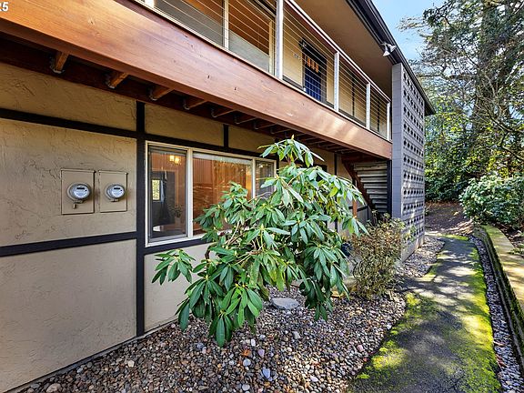 One-of-a-kind ground level condo gem near Multnomah Village! Experience greenery and nature from every room. Light and bright with lots of windows, updated LVP flooring, paint and carpeted bedrooms. Large mid-century modern wood burning fireplace. Generous sized primary bedroom with an ensuite half bathroom. Updated bathrooms with new modern vanities, toilets, and fixtures. Recent kitchen refresh includes kitchen counters, tile backsplash, stylish baker’s cabinet and stainless-steel appliances. Newer washer, dryer and refrigerator included. Bali shades on all the windows. Mini split in the living room heats and cools. Kitchen pantry and lots of closet space throughout. A slider opens from the living room to a gorgeous, covered patio with interlocking all-weather acacia wood slat decking. Look out to a serene garden area with a bench, birdbath, and year-round ground cover and flowering plants, including rhododendron bushes, azaleas, camellias, and more. Large storage shed off the patio with shelves and electricity. A community pool and landscaping, water, sewer, trash and recycling service are included in the monthly HOA fee. Amazing location walkable to Multnomah Village & Gabriel Park. Multnomah Village is a great place to enjoy dining out and shopping with a host of restaurants, brew pubs, art galleries, and unique retail stores. Nearby parks offer sports courts and walking trails.