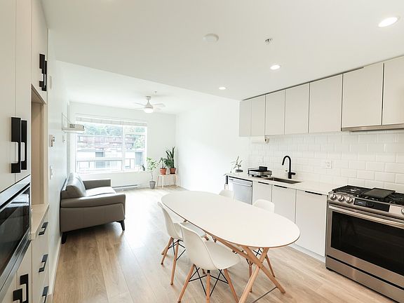 Welcome to George by Marcon in the heart of Port Moody! This bright south-facing 1 bed + large den, 685 SF (excluding balcony) home boasts 9' ceilings, large windows, and balcony. The open layout features a modern kitchen with stainless steel appliances, gas range, quartz counters, and sleek cabinetry. The versatile den works as a home office, guest room, or nursery. Amenities include a social lounge, courtyard, playground, work/hobby room, bike room, and car/pet wash stations. Steps to Moody Centre SkyTrain, West Coast Express, Rocky Point Park, Brewers Row, shops, schools, and trails. Includes 1 parking and 1 spacious storage. Pets and rental friendly!