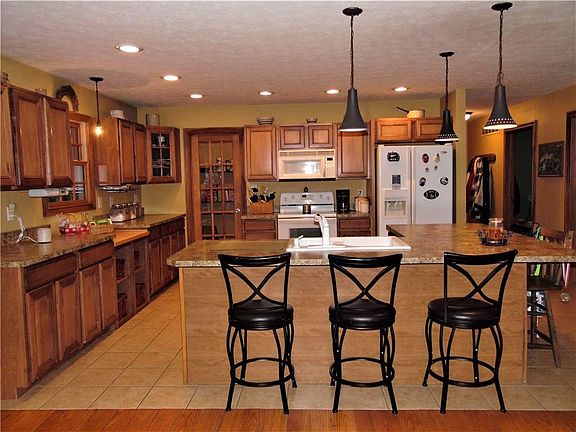 Beautiful 5BR ranch home nestled on 1.2 acres in rural subdivision. With 4792 sq. ft. this home has so much to offer. Living room has hardwood floors and cozy wood burning fireplace. Large kitchen has center island and 10x8 walk-in pantry. Spacious master has 10x10 sitting area & walk in shower. Screened in porch can be accessed from your master or dining room. Downstairs offers 2nd kitchen with dining area, family room w/FP, 4 large bedrooms and 2 jack and jill baths. Home has a total of 3 full and 2 half baths . Enjoy outdoor living from your deck or private back yard. Covered front porch runs entire length of home--72 ft. Storage galore! Conveniently located close to everything. What more could you want.