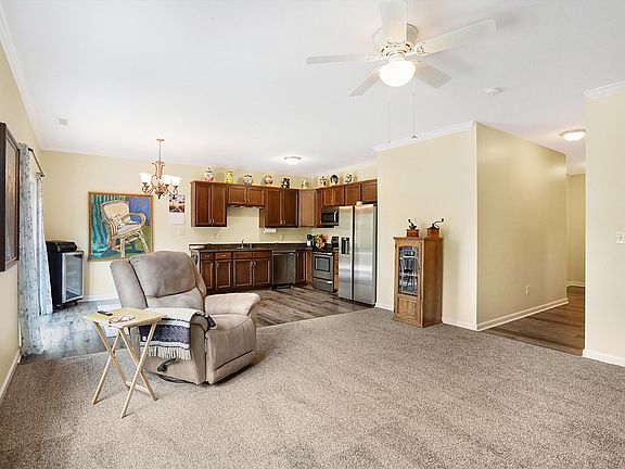 Pristine ranch home w/ great curb appeal on private, wooded lot in popular Greystone Village! Open concept layout w/ 9' ceilings features split bedroom floorplan lots of windows for plenty of natural light throughout. Freshly painted NEW carpet 2024. Entry leads to spacious Great Room bright Eat-in Kitchen w/ ample cabinet space and stainless steel appliances. NEW refrigerator 2024, NEW dishwasher 2023. Primary bedroom ensuite includes large WIC, granite counters tub/shower combo. Enjoy relaxing or entertaining on the sprawling, refinished deck overlooking the incredible backyard w/ several mature trees complete w/ fire pit! NEW A/C 2024. Minutes to Morse Reservoir and several golf courses. Peaceful serene, yet minutes to shopping dining.