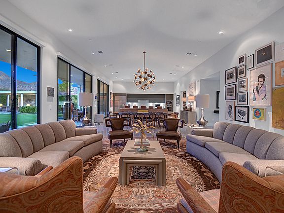 This property is hands down the chicest villa to hit the market in the gated community Monte Sereno located in Palm Springs south end. This Modern Villa Plan has a strong architectural street presence with custom landscape design by architect Sean Lockyer and bespoke interiors by Monty Collins. This property offers the same high volume open floor plan and separation of space that the Modern Villa is known for and on one of the largest lots in Monte Sereno. It enjoys layers of high end details such as solar shades inside and outside, premium sound system throughout the property, upgraded owned solar, and Pelican water filtration system. A Modernist kitchen with oversized island and open living room and dining area enjoy massive art wall opportunities and fireplace setting the stage for a beautiful atmosphere to relax or entertain friends. The Fleetwood sliders lead to covered patio and lushly landscaped yard with pool and spa. Additionally, there are misters and an outdoor entertainment pavilion with a fireplace. Luxurious sophistication at its finest.