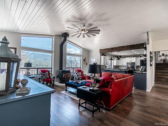 This stylish modern country home features 3 bedrooms, plus office and 2.5 baths, including a very private master suite with high ceilings, stunning views, luxurious master bath that includes a large walk-in shower, soaking tub and oversized dual vanity with granite countertop. The walk-in closet is a Dream! Built-in dresser, floor to ceiling storage with plenty of room to get dressed.The first floor offers an open floor plan that effortlessly flows from one room to the next and includes a magnificent blend of classic and modern detail, with impressive features including beautiful laminate flooring, custom window treatments, tongue and groove ceilings bring extra charm with custom lighting and ceiling fans throughout. The spacious living room with a built in media center and a pellet stove fireplace surrounded by enormous glass windows has a surreal view. The gourmet kitchen is exquisite, with granite countertops, custom cabinetry, two ovens, gas cooktop, farm sink, oversized faucet and large breakfast bar. The large dining area brings a very stylish yet cozy touch to the home.The oversized 3 car garage with workshop/half bath has plenty of ample storage and shelving space for any hobby or toy. Fitted with 220 outlet for larger projects. Life has been made just a little easier with the whole house vacuum system. Just plug in and go. While sitting on either the front or rear deck, the views will be exquisite! Bear Valley Springs is a gated community with amenities that include golf, pool, rec center, equestrian center, lakes, hiking, country club, tennis, pickle ball and much more. Please call for your private tour of this home and the community.