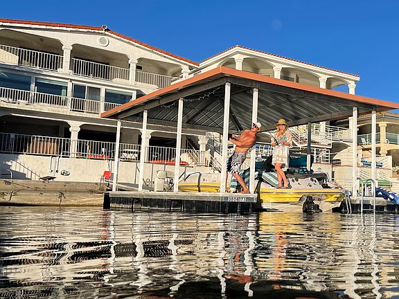 I am rushing this listing to the rental market because of the tragic fires and the many families that have lost their homes. This home is our vacation home and is definitely in need of some upgrades. That being said, it is in a great location. Less than 1.5 hours from LAX. Its in a gated city with security. This is our vacation home and is fully furnished with basic furniture. It sleeps 10 or less. I'll consider all durations. It is lakefront with amazing views and a covered dock. It's on the east bay and swimming / fishing is allowed right off our dock. There are 4 kayaks, 2 paddle boards, pool table, and a beat up ping pong table. I have a ski boat and would consider including it for an additional $1000 per month. Boat training / license would be mandatory. Owner pays POA. Tenant pays electric and water
