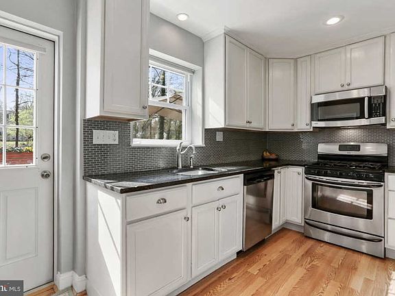 Welcome home to this beautifully updated cape cod on a spectacular corner lot in Falls Church. Stunning traditional floor plan with large combined living & dining, gleaming luxury vinyl flooring, & fresh neutral paint throughout. The gourmet kitchen offers stainless steel appliances, gorgeous tile backsplash, unique exposed brick, granite countertops, & recessed lighting. You'll enjoy the abundant natural light & cozy fireplace in the living room. The main level also features three generous bedrooms, and a fully updated bathroom, complete with a jetted spa tub. The spacious fully finished basement offers a large family room with cozy, stone fireplace, laundry room, and includes large bonus space for an office or home gym. A large fourth bedroom & second full bath offer privacy, & are well-suited for an au-pair or mother in law suite. Enjoy the expansive outdoor space with a large deck off the kitchen, perfect for entertaining. This private lot is located on a quiet cul-de-sac, and overlooks a serene wooded setting complete with a creek bordering the property. Upgrades include: a fully fenced in yard in 2015, new water heater in 2017, new roof & gutters in 2018, newly paved driveway & new washer in 2019, & new dryer, refrigerator, & master carpet in 2020. Welcome Home!