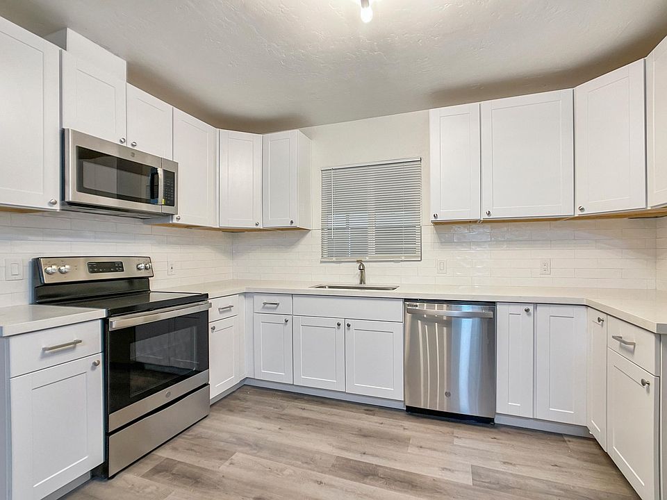 - Exterior features: Electricity not included in rent, Garbage not included in rent, New Paint Inside & Out, New Roof, New Windows, Quartz Countertops, Renovated Bathroom, Renovated Kitchen, Sewage not included in rent, Spacious Private Fenced In Backyard, Stainless Steel Appliances, Subway Tile Backsplash, Subway Tiled Shower/Tub, Water not included in rent