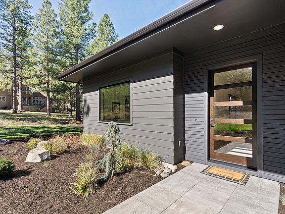 Perched atop Awbrey Butte's desirable west flank, this stunning NW contemporary newer construction is bathed in natural light, offering welcoming spaces and exquisite interior details. Single-level living ''done to the nines''. The residence boasts an expansive west-facing deck with a custom fire pit, framing breathtaking Cascade Mountain vistas. Inside, 10' ceilings enhance the light-filled ambiance, centered around a magnificent great room and an expansive kitchen showcasing quartz countertops and Thermador appliances. The primary bedroom suite, privately situated on the north end, offers a serene retreat. 3 additional guest bedrooms are thoughtfully nestled in the south wing, providing privacy and comfort and are complemented by a media room. A large walk-in pantry, a well-appointed laundry room, and abundant storage solutions throughout. The generous 971 sq ft, 3-car garage features an oversized Sprinter bay with 12' ceilings, custom cabinets, epoxy floors. Truly an exceptional home