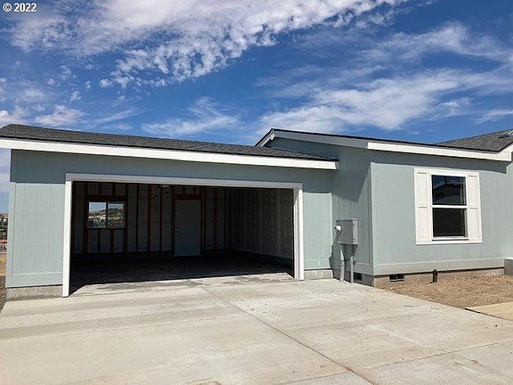 Brand new manufactured home! 2022 Fleetwood double-wide with 1279 sq.ft.(m/l), 3 bedrooms, 2 baths. Recessed can lighting. Primary bedroom with walk-in closet, primary bath with 60" walk-in shower. Upgrades include 42' kitchen island and eating bar, deep stainless steel kitchen sink, single lever faucet with pull-out sprayer. HVAC forced air electric. Double car garage, driveway for off-street parking. Back patio. Buyers responsible for landscaping.