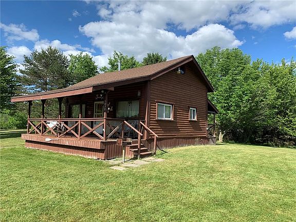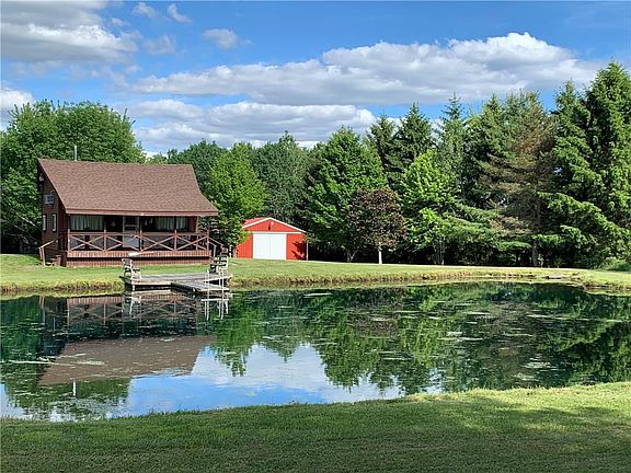 Quaint log cabin located on 8 acres minutes from Keuka Lake. It is full of rustic charm featuring an open floor plan, gas fireplace, second story loft which acts as second bedroom, updated kitchen as well as new hot water heater. Enjoy the view of the pond on the spacious front porch or from the newly built 21x8 pier. Pond is stocked with fish. Also featuring a 30x40 barn perfect for storage or convert into a workshop. Beautiful property that offers a very peaceful getaway.
