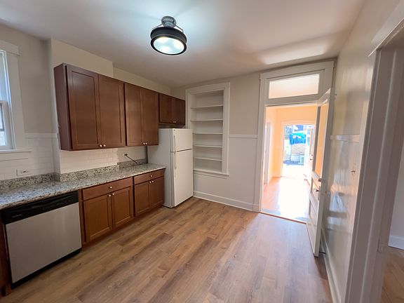 3 bedroom, 2 full bathrooms, just rehabbed, available now! bright and sunny 2nd floor with tall windows freshly sanded wood floors spacious living room and large dining room large kitchen with dishwasher, built-in microwave, and brand new stove 1 new tile bathroom; 1 rehabbed vintage tile bathroom unique vintage details and natural wood trim new big back deck being built now new gas forced air heat and AC, tenant controlled free washer and dryer in basement attentive (but not intrusive) landlord in neighborhood 1 or 2 cats welcome small dog considered with $200 pet deposit credit check required via Zillow lease required bond insurance through Rhino required (instead of security deposit) Credit check required via Zillow. Must have good credit, but landlord understands student loan debt and medical debt. Lease required, tenant can chose end date of April 30 or May 31, 2025. Following years' lease will be a full year. Bond insurance required (instead of security deposit) through Rhino. Tenant pays utilities. 1 or 2 cats welcome. 1 small dog considered with $200 pet deposit. No smoking indoors.