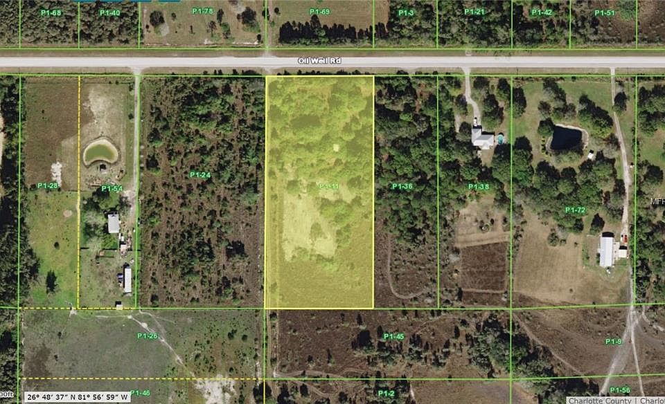 5 acre parcel in south Punta Gorda on Oil Well Road. This parcel has frontage on Oil Well Road and has wetlands on the Southern part of the lot. The front 1.2 acres is buildable....approx.