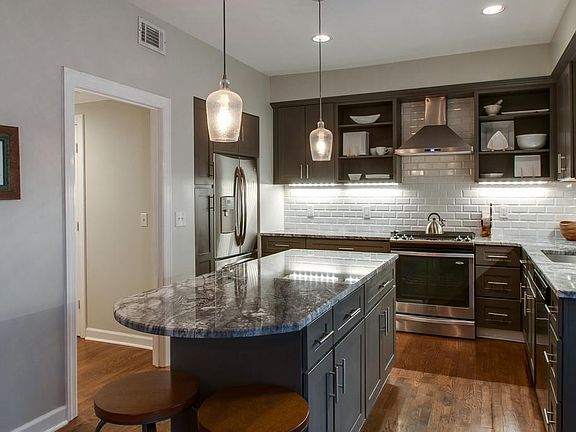 Tasteful updates are abundant in this 2-BR, 2-BA, 1672-SF flat. Features: Marble/SS kitchen, gas range, over-sized island, separate dining room, open living area w/ gas logs, large main bedroom w/ hardwoods & custom bathroom, 2 car garage, storage, more.