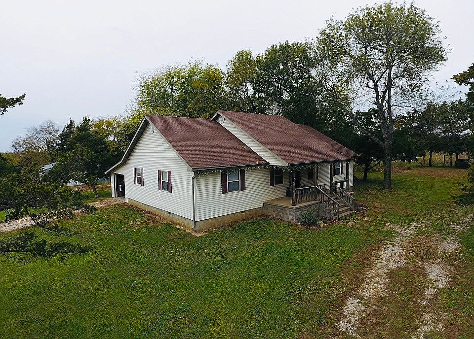 Stunning three bedroom, two bathroom ranch style home nestled on 40 acres in rural Bourbon County. Open floor plan with vaulted ceilings. Features include a large master bedroom suite with walk-in closet and attached master bathroom and a laundry room with extra cabinets for storage. Two additional bedrooms lay on the other side of the home with a bathroom including a double sink in between. Kitchen boasts a walk-in pantry with a coat rack and shelving. Ample attic space with access from the inside of the home exists. Single car garage is attached to the home. 30'x40' partially insulated shop with electricity, concrete flooring, sink, and functional drainage sits just behind the house on the west side. Three additional outbuildings are on the property, including a pole barn. Of the 40 acres, 35+ are fenced pasture ground, with two ponds. The large yard is surrounded by cedar trees providing plenty of shade, windbreak and privacy for this must-see home.