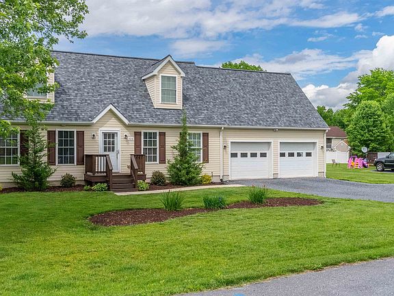 A very well-kept cape cod style home conveniently located within walking distance to the town park and school. The level large yard, screened sitting porch and new stamped concrete patio are just a few of the unique features this home has to offer. There is an entire second level primary suite with a separate office and a built-in electric fireplace. This level also provides an additional unfinished bonus room over the garage for incredible storage, or room to grow! Major improvements include a new roof with 50-Year shingles with a transferable warranty (2024), and an entire new upgraded HVAC with an air purifying system (2020). The exterior of the home has been freshly power washed (2024). Come tour this beautiful property to see the many additional features and make it home!