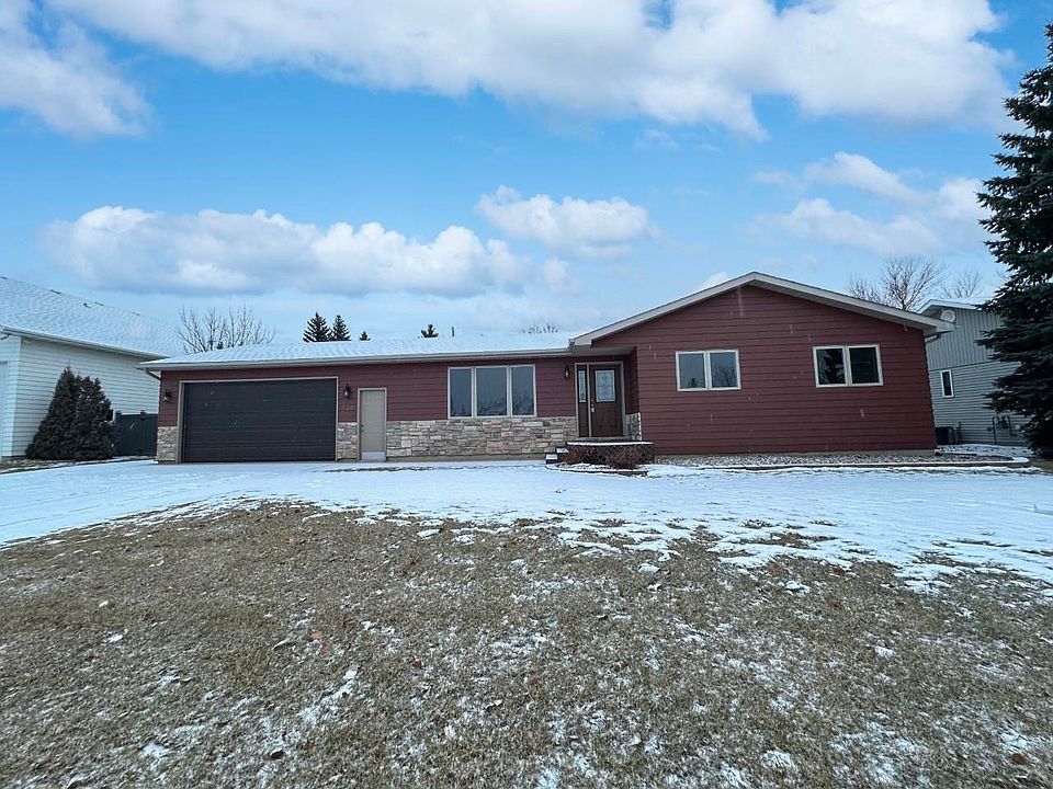 Welcome home to "Rainbow Ridge!"  This exclusive neighborhood located in NW Minot offers easy access to all main thoroughfares of town thanks to being situated near the 83 bypass.  This stunning ranch style home has been updated from top to bottom.  The first thing you'll notice is the striking curb appeal with a rich burgundy siding color, stone accents, and wood-like garage door - plus extra side concrete parking pad & brand new shingles.  Entering from the front door, you'll love the spacious living room featuring a large window with west exposure and new paint and flooring.  The u-shaped kitchen has granite countertops and an upgraded stainless appliance suite.  Off the dining, you'll find a new set of patio doors that lead out to your composite deck where you can relax, unwind, and enjoy a soak in your very own hot tub.  This picture perfect backyard also features underground sprinklers, mature trees, privacy fencing, yard shed, and even a kennel for your furry friend!  Back inside and down the hall you'll find three main floor bedrooms including the spacious master suite with a walk in closet and upgraded bathroom.  The basement is an entertainer's delight with the extra large family room which houses a corner fireplace, wet bar with stainless fridge, laundry facilities, non-egress bedroom 4, and upgraded third bathroom.  Take a look today!  Agent related to sellers.