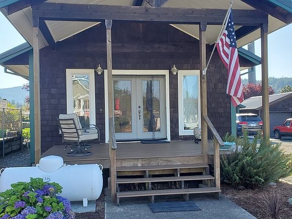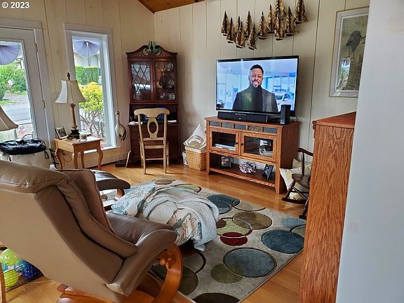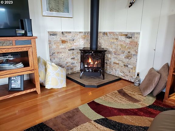 Cozy living is what you will find in this quaint little one-level cottage. 820 sqft 1 bedroom 1.5 baths. Home has a very open concept from the living room to the kitchen. Living room has exterior entry and a propane gas fireplace. Kitchen with Stainless Steel Appliances including range, fridge and dishwasher. There is also a built in microwave as well as a disposal. The bedroom has a walk-in closet as well as en-suite bathroom with walk in shower and lots of storage. The laundry room also is a half bathroom making it convenient for your guests. Outside find a detached single car garage, patio area, deck and plenty of parking. Home was painted just over 1 year ago and the garage roof is new in 2023. Don't miss out on the opportunity to own something on the coast.