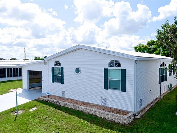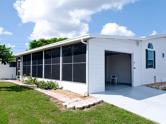 *****YOU OWN THE LAND ******* AS YOU ENTER THRU THE GARAGE YOU WILL SEE A HUGE 3 CAR PLUS PARKING SPACE.64X12 THIS GARAGE IS EQUIPTED WITH A DOOR AT EACH IN WITH ROAD ACCESS ON BOTH ENDS. YOU FRIENDS CAN DROP OFF AND PICK-UP IN ALL KINDS OF WEATHER. NOTICE THE LARGE WORK SHOP IN THE GARAGE 12X10 AND ASTORAGE SPACE 13X5 FOR THOSE WHO WANT TO CREATE. AS YOU ENTER THE HOME YOU WILL FIND AN EXTRA LARGE DINING AND LIVING ROOM 26X15. PERFECT FOR ENTERTAINING. THE KITCHEN AMPLE CABINET SPACE PLUS A WALK IN PANTRY. ON THE FAR END OF THE KITCHENTHERE IS AN EAT IN AREA WITH SLIDING GLASS DOORS THAT LEAD TO THE FLORIDA ROOM WHICH IS GREAT FOR MORNING COFFEE OR EVENING CONVERSATION. THERE IS ALSO A WASHER AND DRYER TUCKED AWAY IN THEIR OWN CABINET OUT OF SIGHT OUT OF MIND. THE MAIN BEDROOM HAS TWO WALK IN CLOSETS AND THE BATH INCORPRATES A LINEN CLOSET AND TWO VANITIES AND AWALK IN SHOWER. THE SECOND BEDROOM IS COMPLETELY COMFORTABLE FOR A QUEEN BED ALSO BOASTS A LARGE CLOSET. THE THIRD BEDROOM IS A REAL TREAT WITH FRENCH DR ENTRY TO AN OFFICE WITH A LARGE CORNER DESK COMPLETE WITH DRAWERS GALORE SHELVING THRU OUT THE ROOM AND A MURPHY BED FOR OFFICE BREAKS OR GUEST OVER FLOW. ***YOU MAY LOOK LONG AND HARD BUT IT WILL BE DIFFICULT TO MATCH THIS *** THEN THERE IS THE CLUB HOUSE LARGE MEETING AND ENTERTAINMENT STAGE POOL TABLES LIBRARY AND A KITCH FOR FEEDING LOTS OF HUNGRY PARTY GUESTS AND AN OUTDOOR SHUFFLEBOARD COURT. AND LOTS OF SOCIAL ACTIVITIES. CHECK THE AERIAL PICTURES TO SEE HOW CLOSE YOU ARE WHEN YOU WANT TO GO TO THE WATER. MINUTES TO LOTS OF RESTAURANTS,SHOPING AND ENTERTAINMENT DONT WAIT CALL NOW