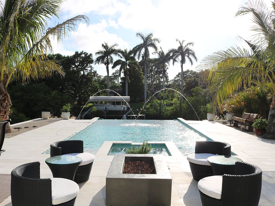 - Pool features: Heated, Salt Water, Auto Cleaner, Infinity, In Ground, Gunite, Lighting