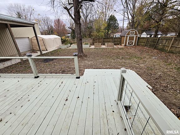 Charming 3-Bedroom Home with Pole Barn and Extra Lots in Bluford. Move right into this beautifully updated 3-bedroom, 1-bath home in the heart of Bluford! Homes like this are a rare find in the area, so don’t miss your chance to make it yours. Step inside to discover recent updates, including new flooring, fresh interior trim, and paint throughout. The kitchen is a true centerpiece, featuring a marble tile counter island with bar seating, solid wood cabinetry, and stainless steel appliances. The bathroom has been stylishly updated with a tiled tub and walk-in shower, blending practicality and modern design. The outdoor amenities truly set this property apart. The fenced-in backyard includes a storage shed and planter boxes, perfect for gardening enthusiasts. Enjoy relaxing or entertaining on the spacious deck, overlooking two additional lots that provide plenty of room for kids, pets, or your dream garden. The 30’ x 50’ pole barn/garage, built in 2017, is a standout feature with a large overhead door, loft space for storage or a bonus hangout area, and a 15’ x 30’ lean-to for additional covered storage. Whether you need room for vehicles, projects, or creating the ultimate man cave, this space has it all. With a roof installed in 2014 and thoughtful updates throughout, this home offers both comfort and functionality. Don’t wait—schedule your showing today and start envisioning life in this fantastic property!