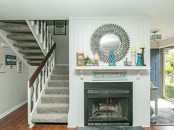 - Fireplace, Window Treatments, Breakfast Bar, Entrance Foyer, Stainless Steel Appliances, Solid Surface Counters