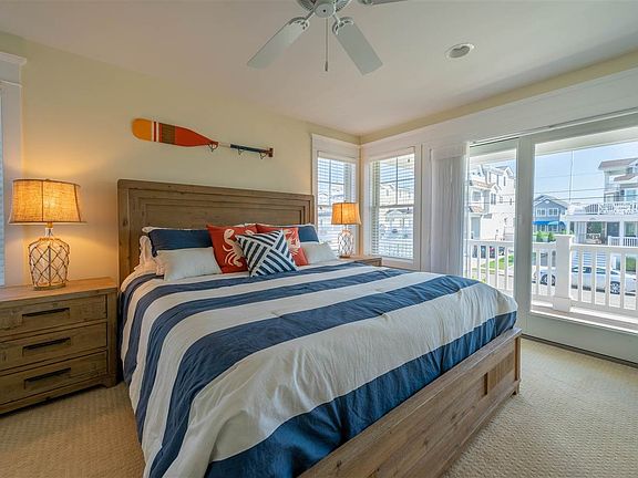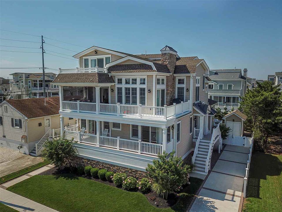Beautifully maintained, 4 years young, spacious contemporary home located close to the beach and the bay in Avalon's south end. Featuring 3 levels of over 4000 square feet of living space, and a full stand up-crawl space providing storage for all of your recreational equipment and ground floor 4 stop elevator. The first floor features a welcoming foyer, 2 bedrooms, with a covered deck, walk in closets, a jack and jill bath with private sink/toilet for each room and a shared shower room. Just off the hallway is a powder room and a laundry room with side door access to outside rear yard. The family room expands the entire width of the home and includes a generous living area, gas fireplace, built in wet bar with full size refrigerator, bar sink, microwave, dishwasher, ice-maker and wine cooler, pub table, and two sliding glass doors that lead you out to a covered deck and custom in-ground pool, complete with sun shelf, waterfall feature, hot tub/sauna, and plenty of space for sunbathing and outdoor entertaining. The second floor contains a modern gourmet kitchen, complete with Viking stainless appliances, expansive custom center island, elegant dining area and living room with a gas fireplace, cathedral ceilings providing an abundance of natural light. A partially covered and screened in deck which runs the expanse of the home providing a cozy outdoor living room with water views. The 3rd and 4th bedrooms are both en-suites with private decks overlooking the pool area, plus a powder room completes this level. The third floor features a master bedroom off the front of the house with a luxurious bathroom, walk in closets and a private deck with both bay and ocean views. The 6th bedroom has it's own private bath and a deck overlooking the south side of the house. Built-in Sonos system, tastefully furnished, well appointed with high end finishes and amenities, throughout, makes this a perfect vacation home for the larger family who enjoys entertaining both inside and out. Sold fully furnished, less some personal items. List of exclusions in associated docs. Easy to show, call for your appointment today!