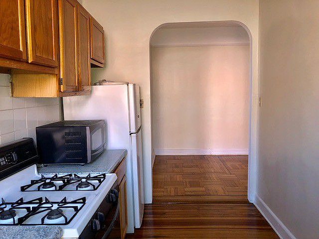 Excellent location! This is a walk-up unit on the third floor. Renovated kitchen, separate living room and dining off the kitchen . Medium sized bedroom and and small second room which can be used as home office ( will not fit a bed). Updated bath. hardwood floors and 1 cat ok. Includes heat and hot water. Amazing location, walk to all! Shops, restaurants, bars, transportation and short walk to Shore Road.