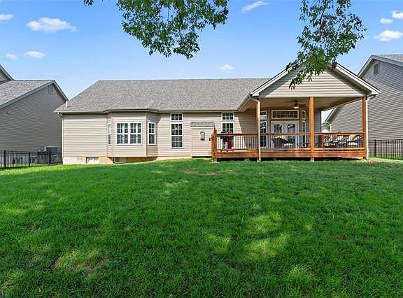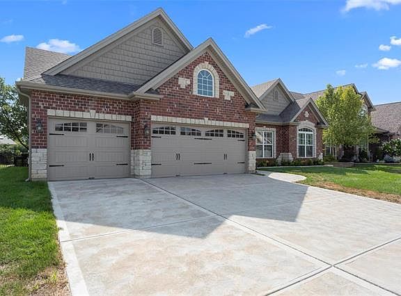 Welcome to this Move in ready, 3 yrs. new, brick and stone ranch with a 3 car garage. There are gorgeous hardwood floors in the great room with a gas fireplace, dining room, kitchen and breakfast room. Enjoy your coffee on the 18x14 covered deck. This home has bright natural light from transoms, elliptical and bay windows, along with vaulted and 10 foot ceilings in the entertaining areas. Newer professionally finished lower level with family room, granite wet bar, wine cooler, refrigerator and separate ice maker. In addition, an extra large bonus room and a office 16 x16, along with a full bath and storage area. The shuffle board game stays.Approx. 1500 sq.ft. Finished in lower level