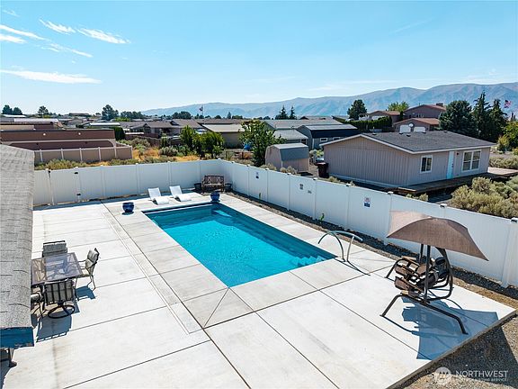 INGROUND POOL! The sellers have replaced the siding with premium James Hardie siding and a beautiful paint palette + new garage door. The home had a new Heat Pump recently and a new front door. Home is an excellent choice as a year-round residence or a week- end escape. With 3 bedrooms and 1 3/4 baths, there is room for guests. Appliances & home security cameras included. Backyard features a 14'x30' inground swimming pool and 6ft vinyl fence for privacy & security. Front yard is low maintenance with the tasteful use of landscape rock and gravel. Enjoy all of Desert Aire's amenities (golf, boat launch, tennis/pickle courts, proximity to Gorge Amphitheatre) Plus Central Washington's 300+ days of sun.