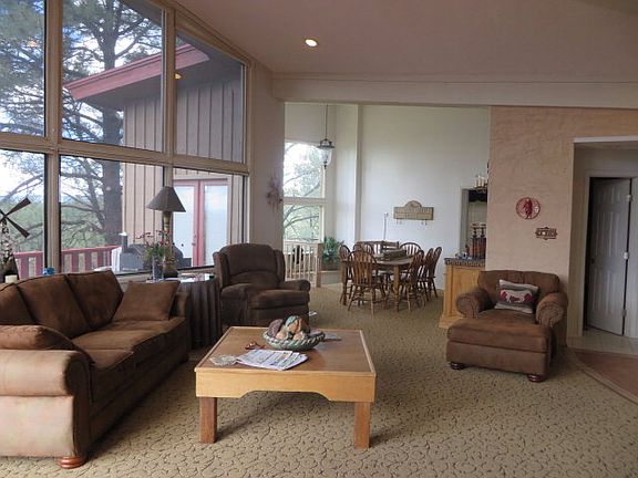 "KNOWN AS "THE INCREDIBLE ONE" This is not your typical 4 walls! Lots of unique features with angles, awesome views, beautifully wooded lots that add up to almost 2 acres. Two levels, tons of outdoor living area, decks and wonderful privacy. Beautifully furnished, with 4 bedrooms, 3 1/2 baths. Great wood burning fireplace accentuates the livingroom. Large glass windows give you great views!. Gas log fireplace downstairs. 2 of the bathrooms feature whirlpool tubs. This is a great party house or would make a really good rental.