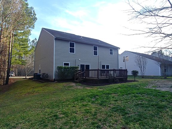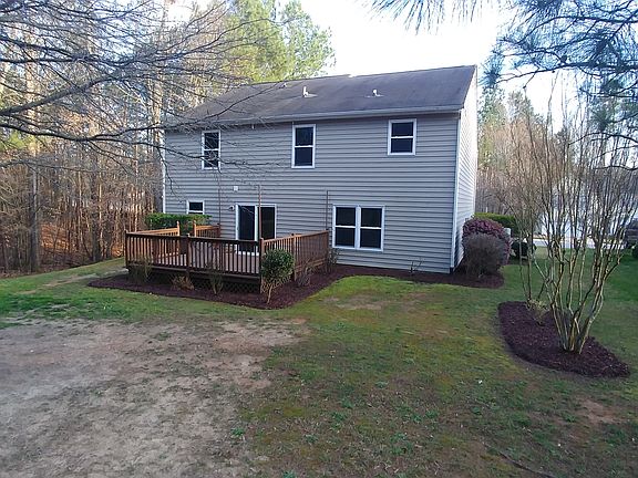 Beautiful home in a great family-oriented neighborhood in Garner NC. Community Pool and Elementary School withing walking distance. New paint, new flooring, Master bedroom with his and her closets, 2nd floor laundry room, bedrooms 2 and 3 with WIC, Loft area, LOTS OF CLOSET SPACE. 1st floor open layout plan with large open kitchen overlooking family room, sliding glass door off the kitchen leading to a huge deck overlooking backyard with wooded views area. 2 car garage, shed, playground and fire pit.