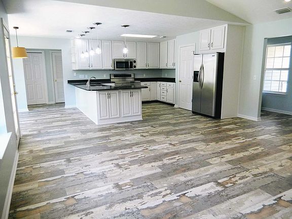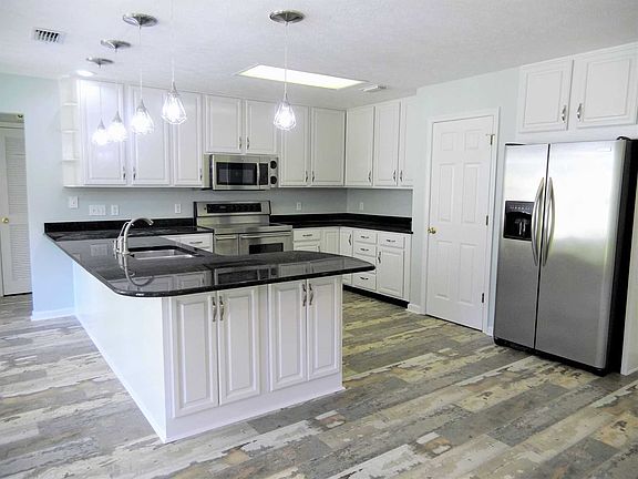With a recent Coastal makeover, this move-in ready 1929 SF, 3/2 plus den/formal dining room, has had all walls freshly painted in the desirable Sherwin Williams colors of Sea Salt and all cabinetry and trim painted in coordinating Eider White, while a new Coreluxe 5.5mm Reclaimed Barn Board EVP Vinyl planks and underlayment have been installed directly over the existing ceramic tile floors. Set on a near 1/2 acre lot with a large climbing oak, a pear, and a kumquat tree, a red brick driveway and walk, an oversized two-car epoxy-floored garage, partial privacy fence, deep well, sprinkler system, (1) shed (wired for 220/110 w/buried compressed air pipe to garage) and (3) covered storage areas. Located less than a 1/2 mile from the Gulf, Mexico Beach Sunset Park, and the City playground, tennis & basketball courts.