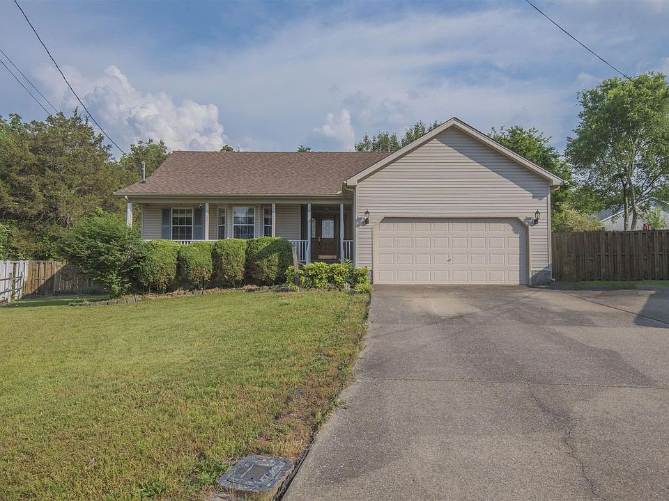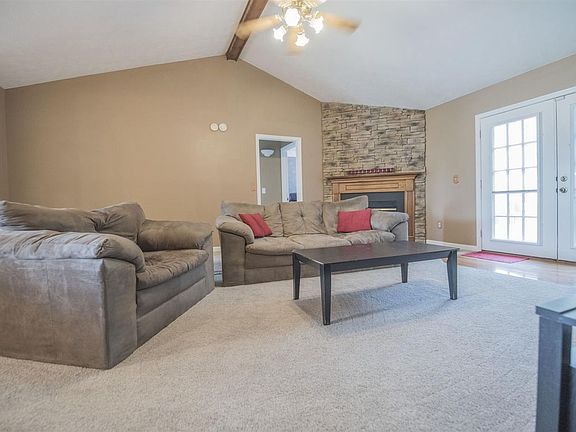 This 3BR/2BA home features one level living with vaulted ceilings, fireplace, solid wood cabinets, appliances remain, tile backsplash in kitchen, laminate flooring, large master suite w/ bay window, huge deck and fire pit!