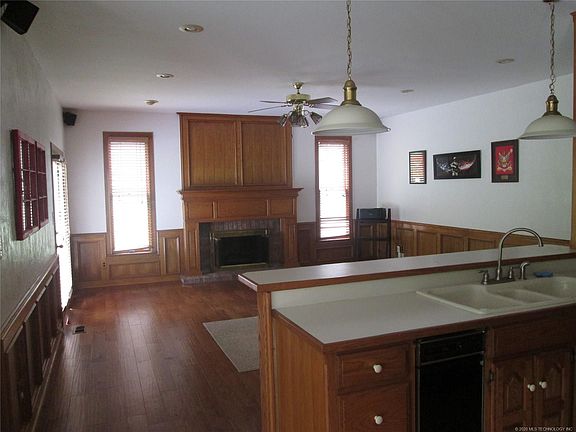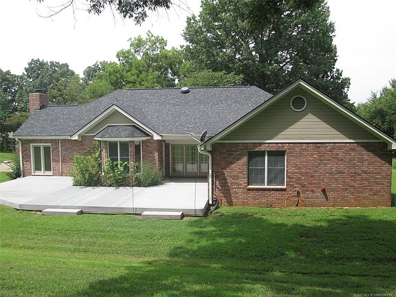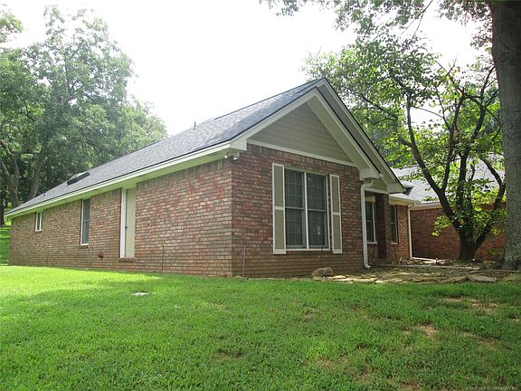 Hilltop, gorgeous home in Fort Gibson School District. Country living close to town. 3 bedroom, 2 bath, 2 living areas. Open kitchen/living with fireplace. Island in kitchen and built in double ovens. Walk in closets in all bedrooms, built in shelves in living and breakfast area. New roof, new hardwood flooring, AC 2 years old, Hot Water tank 1 year old. Deck off back of house to enjoy wild life. Sprinkler system over entire acre. Quiet neighborhood.