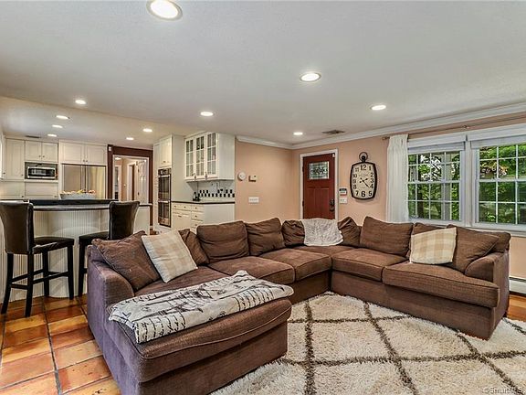 Set on over 2 private acres in one of Cheshire's most sought after neighborhoods, this spacious and bright colonial has classic lines with an updated modern vibe. Remodeled kitchen and baths. Newer windows and roof. Highlights of the home include: heated gutters, freshly painted exterior, central air, three fireplaces, gleaming hardwood floors throughout, custom Mexican tile in the kitchen, family room and four season sun room. The family room is stunning! It features a fireplace, custom built-ins and French doors leading to the sun room overlooking the back brick patio and landscaped yard! The second fireplace is the centerpiece of the large living room. A spacious dining room and half bath complete the main level. A master bedroom suite and 3 additional bedrooms along with a full bath are on the upper level. The third fireplace is in the rec/play room in the lower level. An additional room is used as a workout room but would also make a great office. Lots of storage also. The completely fenced backyard is a wonderful retreat with plenty of space to play and privacy to enjoy.Seller will be leaving the large snow blower and the generator.This really is the ideal home for daily living as well as perfect for entertaining. Conveniently located with easy access to major highways, shopping, schools and restaurants. Just turn the key and move in. A wonderful place to call home!