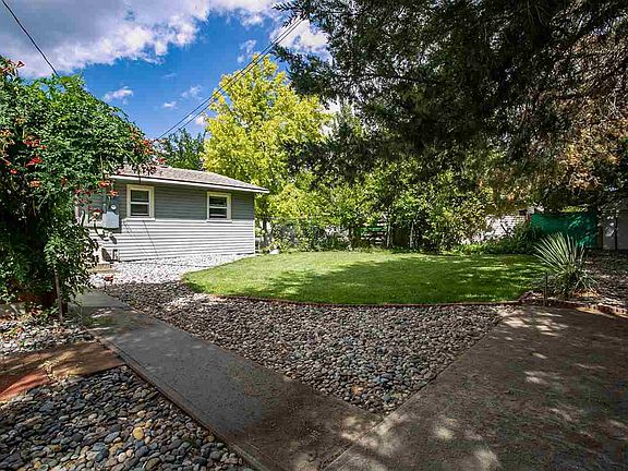 This adorable home that is not in the City, but County, can be your home AND your business. No covenants! Owners had complete machine shop here for 10 years. Tons of parking plus the great 30 x 22 foot shop and garage with 200 amp service. In the past 7-10 years they've put in a new furnace, roof, vinyl siding, paint, tankless water heater, insulation, doors and windows. The woodstove in the living room keeps you warm and cozy all winter. Average bill is $60.00. There's also forced air heat. You feel like you live in the middle of a park. 18 pinyon trees line the back property line, fruitless mulberry, wonderful apple tree, trumpet vines, Maple tree, flowering locust, wisteria and amazing grape vines that line the front wrought iron fence. New paint throughout. Original hardwood floors you can finish to your liking. All appliances stay. You don't want to miss this one.