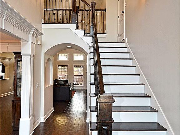 Gorgeous open floor plan in this customized Stoneridge Homes' Tonya resale in desirable Cambridge. Extensive moldings, high ceilings & wood floor extend thru the living areas. Formal dining & study open from the 2-story foyer, which leads to great room w/high ceiling, gas log fireplace & built-ins. Fabulous kitchen w/gas cooktop, walk-in pantry & custom island opens to the vaulted-ceilinged hearth room w/2nd fireplace. Main floor master suite w/elegant bath & 2 walk in closets (one reinforced as storm shelter). Upstairs guest suite w/private bath, 2 additional bedrooms & bonus room. Outdoors enjoy the large covered porch, extended patio & privacy-fenced yard. HOA pools, lakes, paths & more!