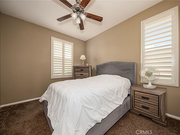 Fantastic View Property in Beautiful Four Seasons. Manor floorplan is a 2 bedroom, 2 bath with 1473 sqft of living space. Incredible views of the San Gorgonio Mountains. Alumna wood Patio cover, which has both lighting and ceiling fans for enjoying the views. Rear yard also features desert landscaping with a fountain, gas piping run for gas BBQ access. Kitchen has pull out drawers, slab granite counter tops, Kohler sink. Both bedrooms have upgraded carpet and padding, with tile completing the home. Master bedroom maximizes the gorgeous view with Bay windows. Home has shutters on all windows except for the master bedroom. All rooms pre-wired with ceiling fans. Come and enjoy the luxurious Lodge amenities, including pool, tennis court, fitness center, walking trails, ballroom, bistro, theatre room, billiards, salon, and much more! A bonus is the Mello-Roos has been paid off, you need to make this a must-see property!