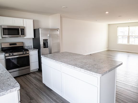 Welcome to this beautifully maintained 4-bedroom, 2.5-bath home in Joliet's desirable Sunset Point development. Built in 2021, this modern residence offers a perfect blend of comfort, functionality, and style. The home greets you with soft blue-gray siding paired with a striking stone facade and an attached two-car garage. Step inside to discover a spacious and sun-drenched main level featuring an open-concept living and dining area-ideal for entertaining. The kitchen boasts stainless steel appliances, an oversized island with additional seating, and ample cabinet space. Upstairs, you'll find four generously sized bedrooms, including a primary suite complete with a walk-in closet and a private en-suite bathroom with double sinks. A convenient powder room is located on the main level, while an unfinished basement offers endless potential for customization. The backyard is open and incredibly large, providing plenty of space for outdoor enjoyment and relaxation. With east-facing rear exposure and west-facing front exposure, this home enjoys beautiful natural light throughout the day. Located just south of downtown Joliet, you're minutes from local attractions like the historic Rialto Square Theater, Chicagoland Speedway, Hollywood and Harrah's Casinos, and more. Don't miss your chance to make this move-in-ready home yours-schedule your private tour today before it's gone!