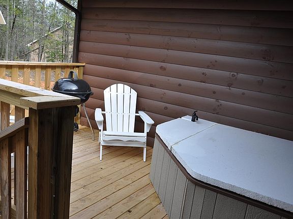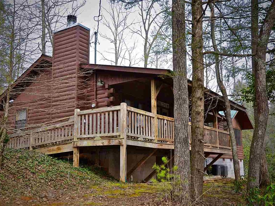 Cozy log cabin on secluded 1.34 +/- acres near Hwy 321 & Rocky Top Sports Complex. Currently being used as permanent home but would make an excellent rental! Mountain view! Mature trees! Secluded! Hot tub, outside storage building. Rocking chair covered front porch! Gourmet kitchen with LOTS of cabinets! Beautiful quartz counter tops. Large island in kitchen. Lots of natural light in master bedroom makes you feel like you are sleeping among the trees! Tile walk in shower in master! Split bedroom plan. This is a rare find so close to town with seclusion an usable walk-able land! Come take a look today!!