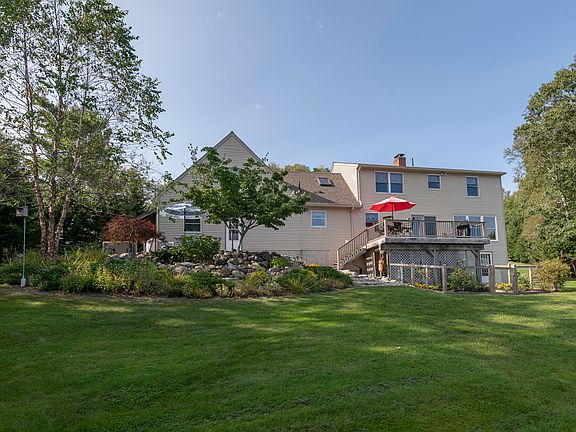 Enjoy your morning coffee overlooking the expansive view of the Kennebec River or Evening moon rise. This flexible floor plan offers a open living concept with a den that could be used as office of 1st floor bedroom. There are 3 bedrooms and 3 baths in the main home and there is a large family or guest space finished over the garage. The gently sloping yard and garden area take you to a private dock and float.