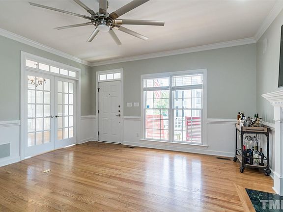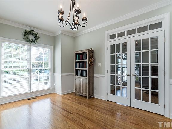 Carpenter Village welcomes you H<3ME into this blue Charleston Charmer! Tastefully updated throughout.Custom granite island, stainless JennAir applncs,cstm cab lighting,gas range,separate dining rm,hardwd floors,1st floor mstr suite w/a brilliantly white spa bath.Bns living rm w/fireplace, dbl porches,prewd security/surround snd systm.Huge insulated walk-in attic storage.Laundry hookup/optn upstairs&down.Finished&spacious garage w/new epoxy floors!Fenced yard,neighborhood events,tennis,walking trails&RDU!