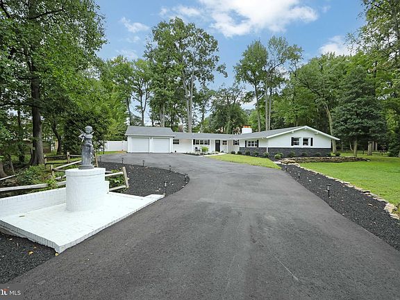 This home was completely renovated and sold in 2024, Owner relocating for work after just 6 months—don’t miss the opportunity to own this beautiful home back on the market! Welcome to 304 Cherry Hill Blvd, a beautifully renovated midcentury rancher blending modern elegance with timeless charm. This move-in-ready home features 4 spacious bedrooms, 3 full baths, and a newly built 2-car garage on an oversized lot in Cherry Hill Estates. Set back 95 feet for enhanced privacy, the exterior includes a new roof, vinyl siding, updated windows, recessed lighting, and a fresh asphalt driveway. Inside, the open foyer flows into dining and living areas with vaulted ceilings and abundant natural light. The living room boasts a full brick wall, wood-burning fireplace, and dual sliding doors to the backyard. The adjacent dining room connects to a dream chefs kitchen with white cabinetry, quartz countertops, gold fixtures, a large island, and stainless steel appliances. The thoughtfully designed kitchen also includes two dishwashers, two sinks, a bar area with a beverage cooler. Beautiful hardwood floors flow throughout the home, including the separate wing that houses a massive bedroom and full bathroom—ideal for guests or as a private retreat. This wing also includes a laundry room and access to the newly built 2 car garage, which features an additional storage room. In the opposite wing, you'll find three more large sized bedrooms. The primary suite is tremendous and features a sitting room ideal for an office, gym, or nursery, a massive walk-in closet with custom shelving, and a spa-like bath with marble floors, a custom shower, and dual vanities. Additional features include new central air, gas heat, a tankless water heater, and a fenced backyard with a new concrete patio and a unique 1955 block fence with an iron gate. Located just 20 minutes from Center City Philadelphia in the Cherry Hill School District, this luxurious rancher is a rare find. Schedule your tour today!