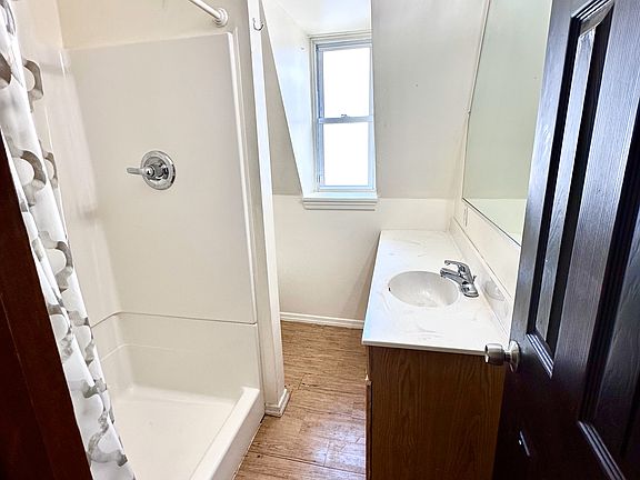 Cozy apartment living space with a kitchen, a large living room, 2 bedroom, and a full bathroom. Fresh updates throughout. From the entrance to the apartment, there is a seating deck This lovely deck makes you feel like you're at a beach house. space ready to move in!