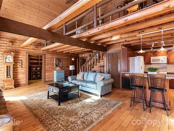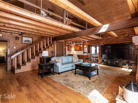 This property is more than just another house, it is a beautiful log home retreat. The long driveway welcomes you to this 3 bed 3 1 2 bath residence on 1.42 acres. The great room has a floor to ceiling stone fireplace, and an abundance of natural light. The open concept lets everyone get in on the fun. Whether in the granite countertop kitchen, sitting by the fireplace, or hanging in the dining area. The owners' bed and bath are on the main, as is the laundry room with half bath. Upstairs features a loft and a 2nd bed and bath. The mostly carpeted basement has a comfy family room 3rd bed and full bath, plus more space. Special touches are throughout the home like incredible hardwood floors, stained glass from an old country church, and stone work. There is a large outbuilding, a welcoming back deck, plus room to entertain and garden. However, if you want to get away from it all enjoy your country home from a rocking chair on your front porch. Some ceiling heights do not meet NCREC requirements.