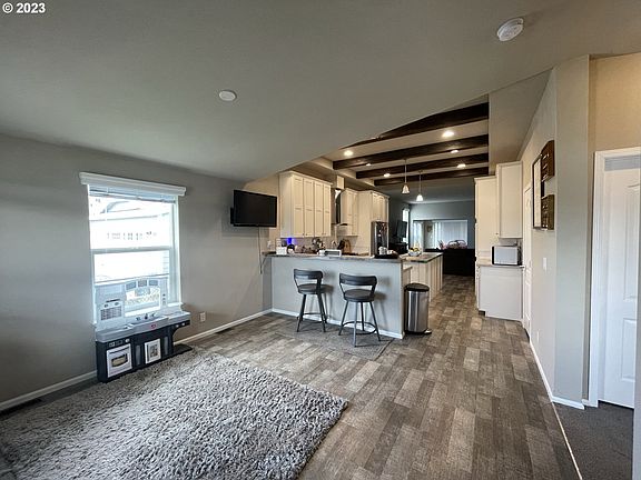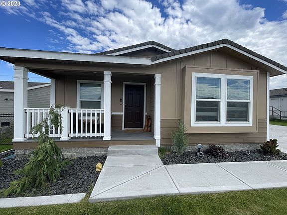 Basically new and priced to sell - this is a must see home in one of Boardman's newer neighborhoods! This 2021 built manufactured home offers a larger floor plan than others like it with 1660 sq. ft., 3 bedrooms, 2 bathrooms, and a large, open kitchen at the center of the living space. In the kitchen enjoy high ceilings with exposed beams, a large island workspace, farmhouse style sink, eating bar, stainless steel appliances, gas range with beautiful range hood, and white subway tile backsplash. Secluded at the back of the house find the primary bedroom with a walk in closet and large attached bathroom boasting a gorgeous tile shower. The laundry room, with washer and dryer included, leads to the large attached 2 car garage with plenty of parking room and storage space. Timed, underground sprinklers make lawn care easy and the fully fenced back yard is ready for furry friends! Call to schedule your showing today!