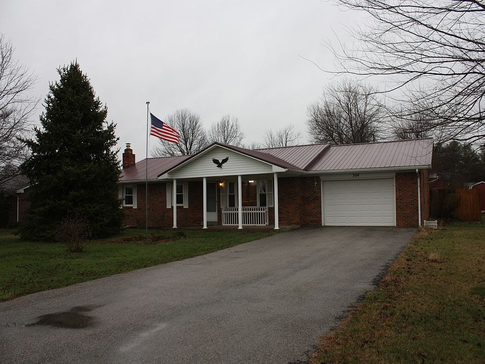 Remarkable Brick Ranch w/full finished basement. Approx 2350 sqft of finished space. Home was constructed by previous owner to be handicap accessible w/ ramp in garage & wider doors thru-out main level. Home has newer "easy to clean" tilt-in windows, metal roof, covered front porch, covered deck & patio, enclosed-insulated sunroom, large kitchen w/lots of cabinets & tile flooring. The basement has newer carpet tiles & great living space. Unfinished area in basement is perfect for office or hobby room. Garage has separate breaker box for workbench area. Back yard is partially privacy-fenced w/wide gates, large shed & play set. Both fence & deck have recently been waterproofed. Updated landscaping includes knock-out roses, some fruit trees & lots of flower bulbs that are just waiting for spring weather!