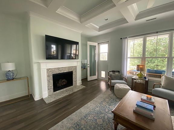 Gorgeous upgrades in this new home in popular nature-centered gated community on the banks of the Cape Fear River. This riverwalk village is so desirable. Walk or ride your golf cart to Davis Square to the post office, gym or pool. You can hang out by the fire pit, play a game of Mahjong, or walk the miles of trails breathing in the fresh salt air. Experience the new General Store which serves coffee, donuts, lox and bagels. You can partake in sampling delights from the frequent food trucks. This neighborhood has everything you are looking for and this house is delightful. No need to wait for your dream home to be built. This fine craftsmanship home is ready now and features soaring 10 ft ceilings and 8 ft doors, gorgeous coffered ceilings in the living and dining areas, extensive trim work, fabulous flooring, custom cabinetry, a master bathroom to die for, and so much more. With multiple downstairs bedroom options, an office, and a huge bonus room and laundry area, this open floor plan is sure to please. Front and rear covered porches make enjoying the outdoors a pleasure. This home is casual elegance at its finest. Come experience a stunning new home in a friendly neighborhood where you can love where you live! One year lease required and most neighborhood amenities included.